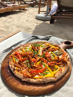 Azure Beach Club Restaurant mit Bedienung am Strand.