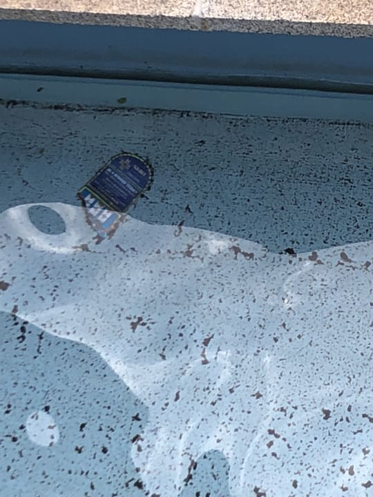 Außenansichtalte Prospekte im Wasserbecken am rechten Hoteleingang