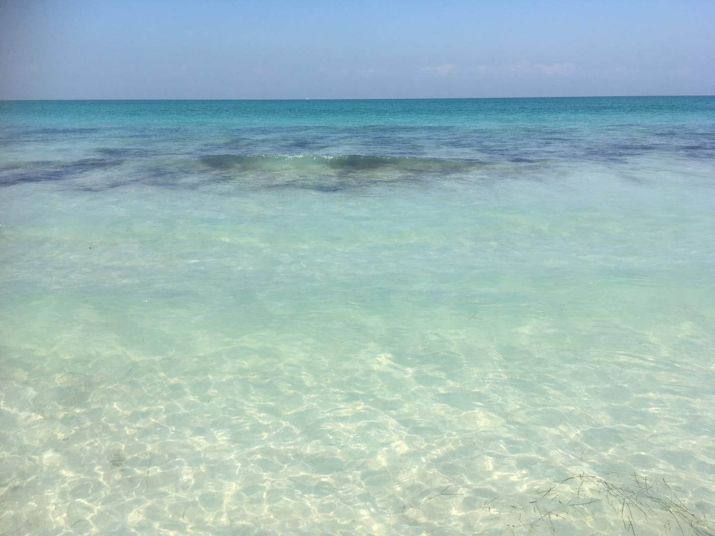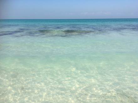 Strandglasklares Wasser, an manchen Tagen wurde etwas Seegras angeschwemmt
