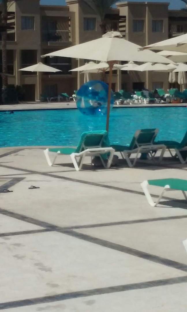 PoolBall in den man rein konnte um über das Wasser im Pool zu laufen