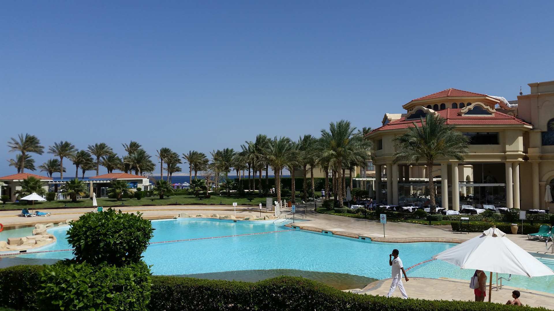 Poolanlage vor Buffetrestaurant