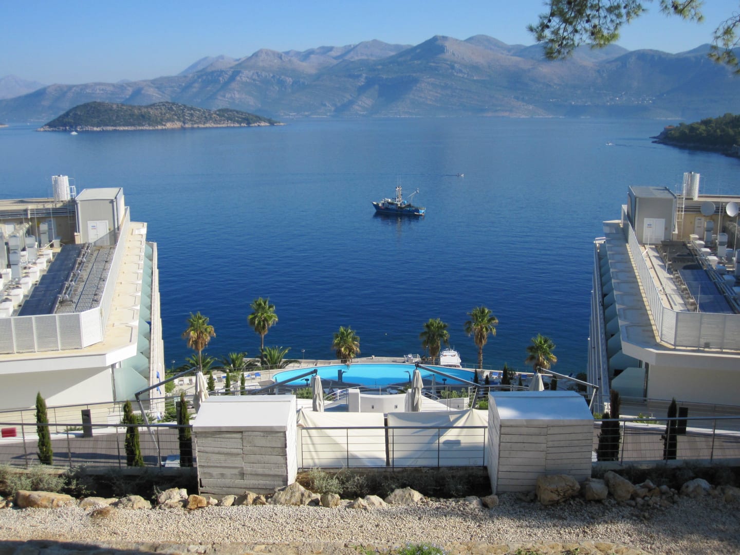 Blick auf Hotel und Meer