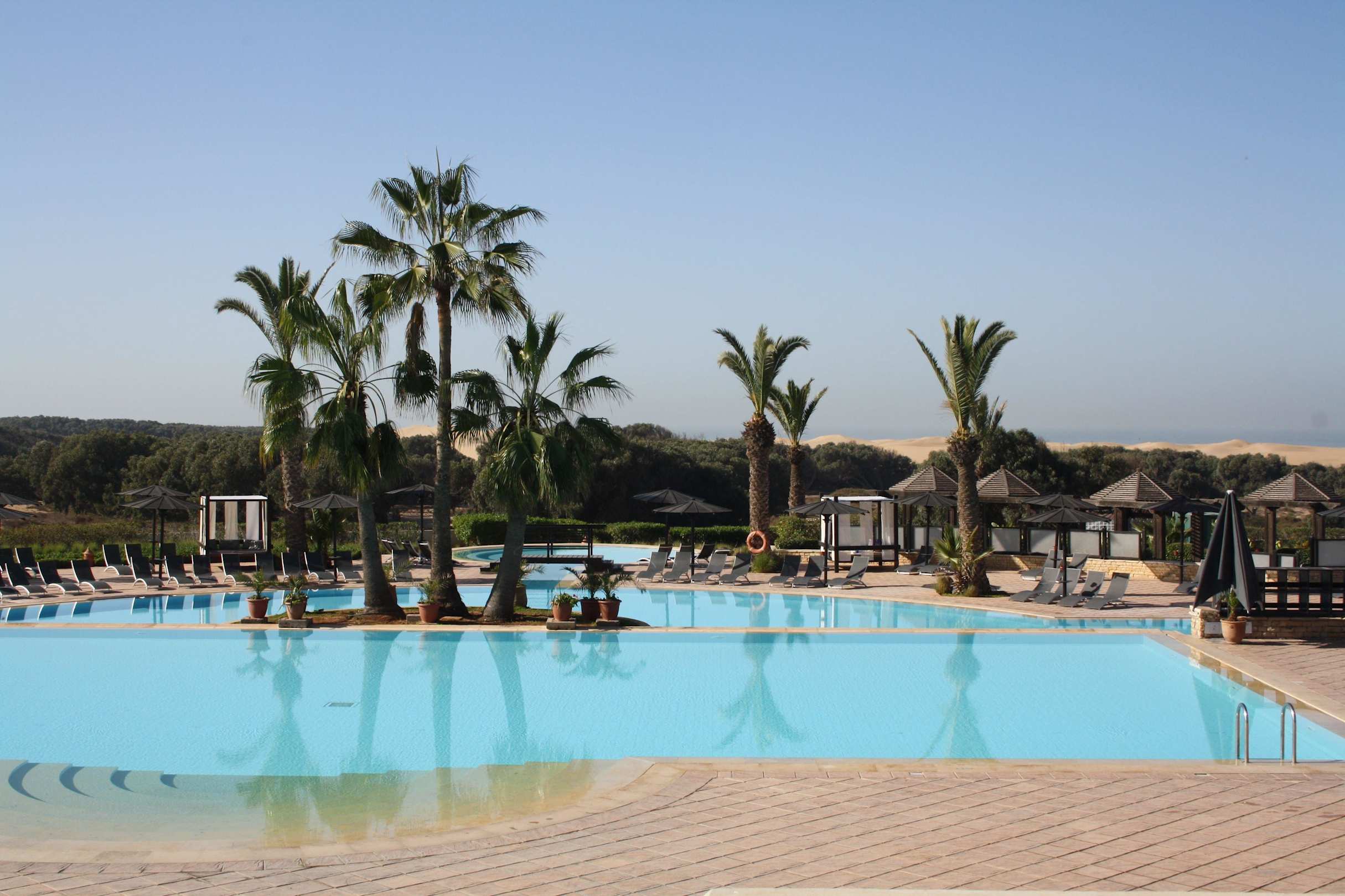 Blick von der Restaurantterrasse auf den Pool