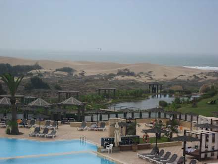 Blick vom Café Maure auf Pool und dahinter Dünen