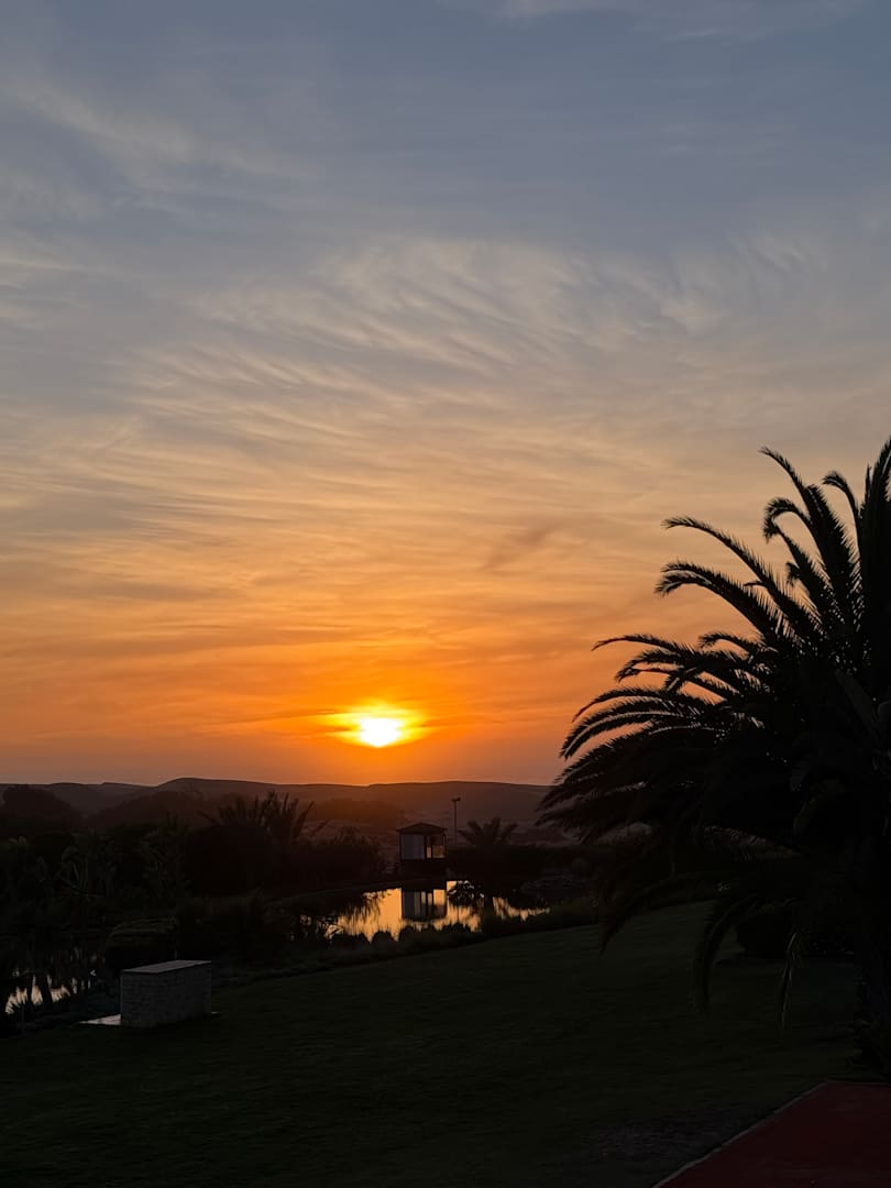 Wunderbarer Blick auf den Sonnenuntergang auf dem Weg vom Restaurant ins Zimmer.