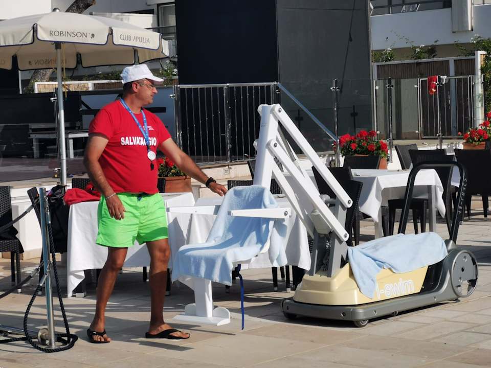 Poollifter mit den lieben Bademeister Martino