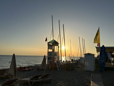 Sonnenuntergang und Wasserstation