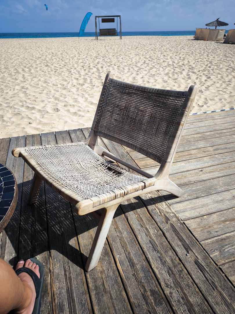 Defekter Stuhl an der Strandbar.