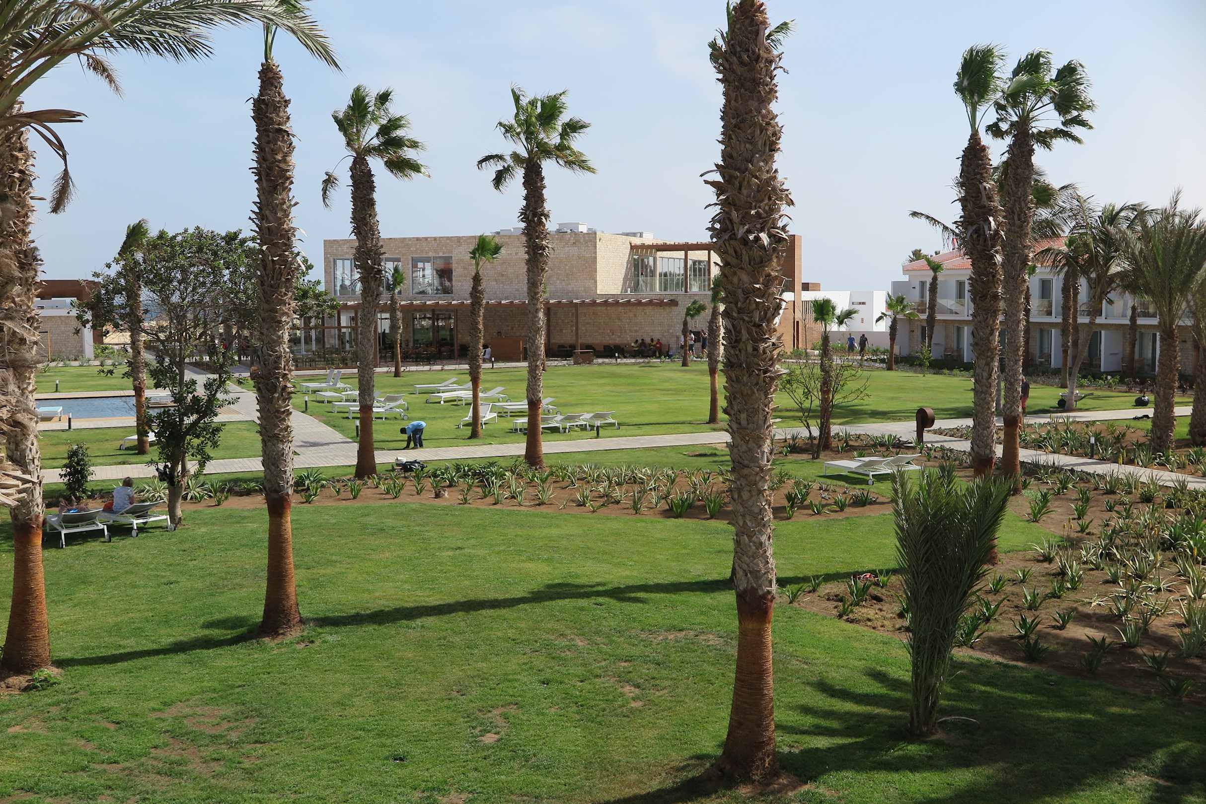 Im OG dieses Gebäudes befindet sich der WellFit-Bereich mit Ausblick auf den Strand.
