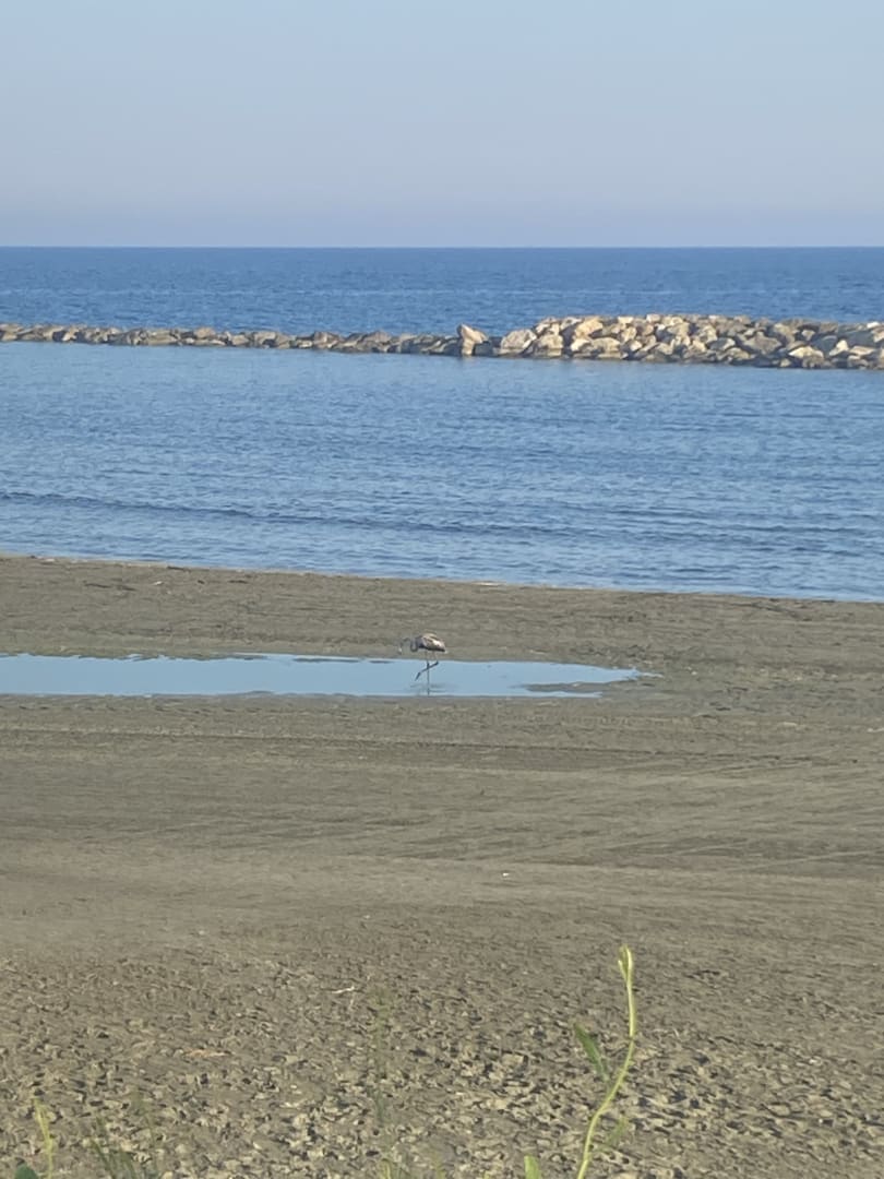 Blick auf den Strand von der Yogaplattform aus
