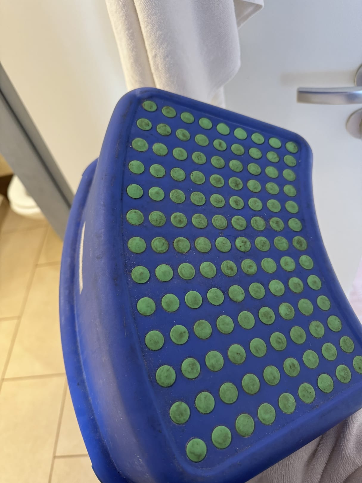 Hocker/ Tritt für die Kinder, um aufs Klo zu kommen. Wurde noch nie sauber gemacht! Ekelhaft!!!
