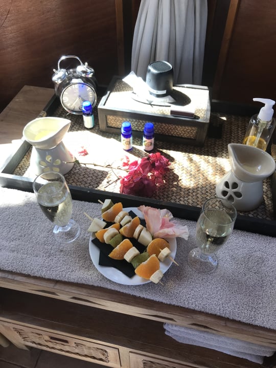 Obst und Sekt nach der Paar-Massage im Pavillon
