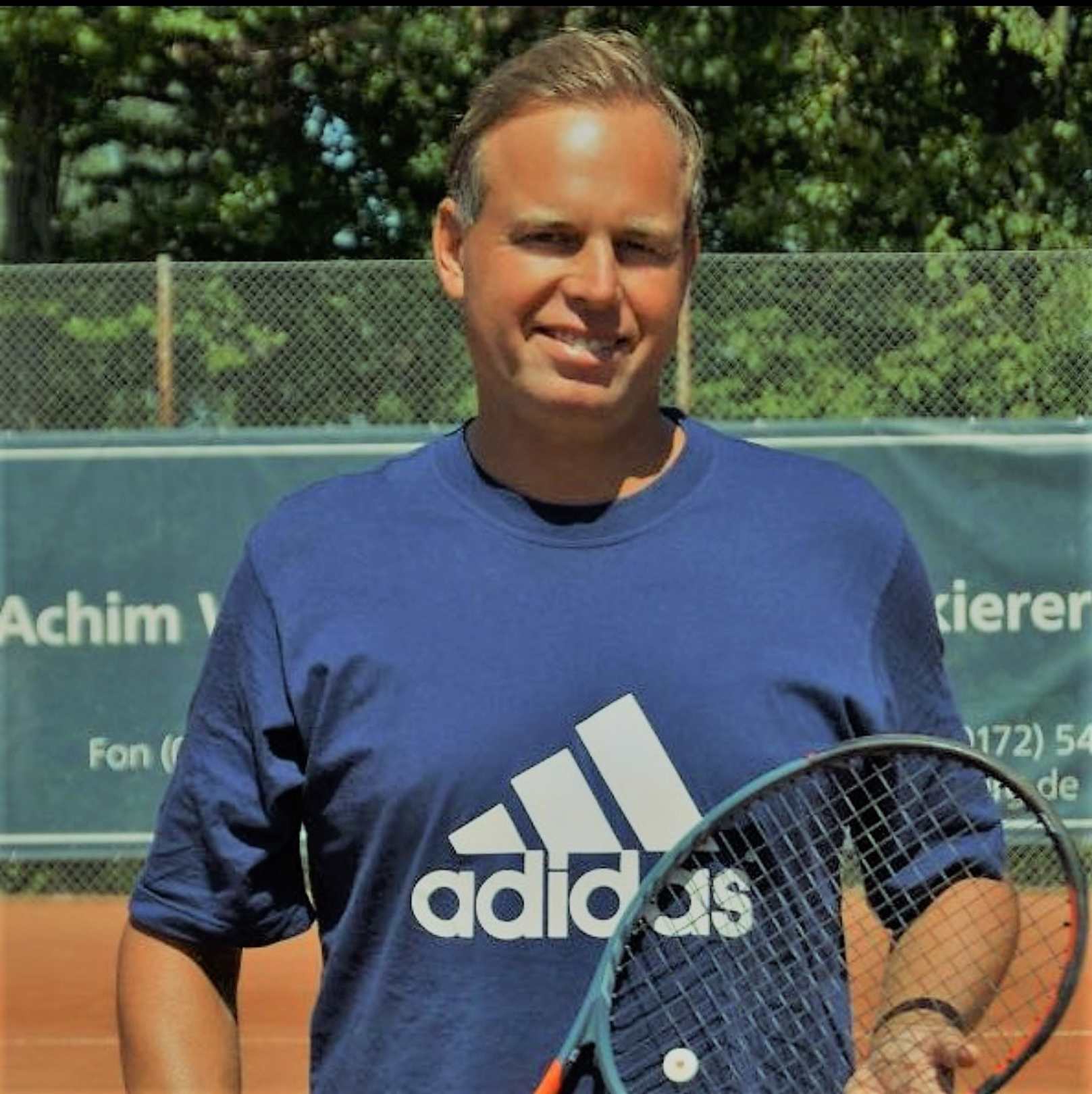 Der Tennistrainer Benni im Robinson Club Esquinzo Playa. Er ist hochqualifiziert und sehr motiviert, so dass jeder Spieler, egal welche Spielstärke er hat, von Bennis Training profitiert.