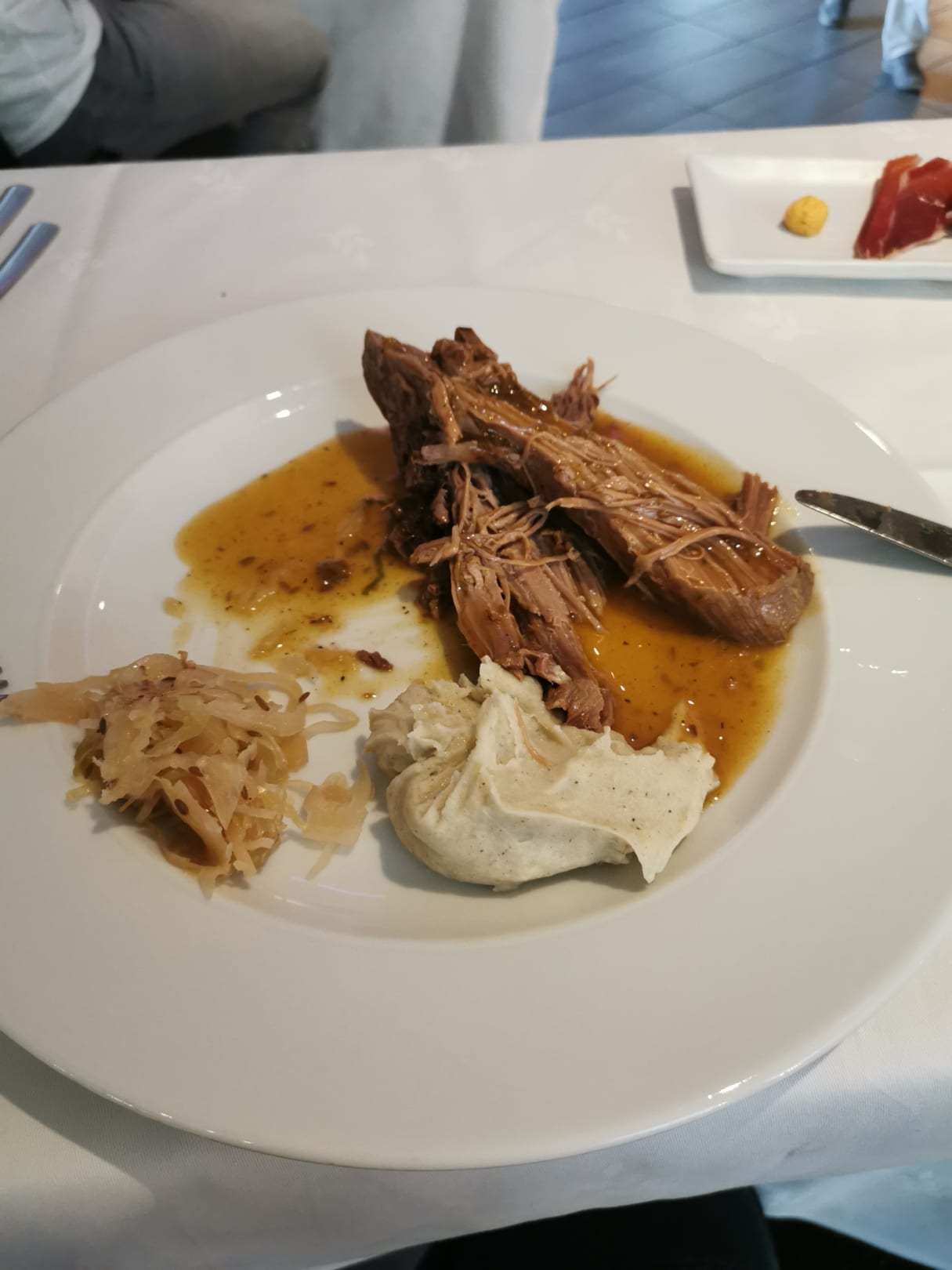 Deutsche Essen Sauerkraut mit Kartoffel Stampf und Fleisch