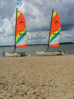 Am flach abfallendem schönen Sandstrand vom Fleesensee mit Beachbar🍹