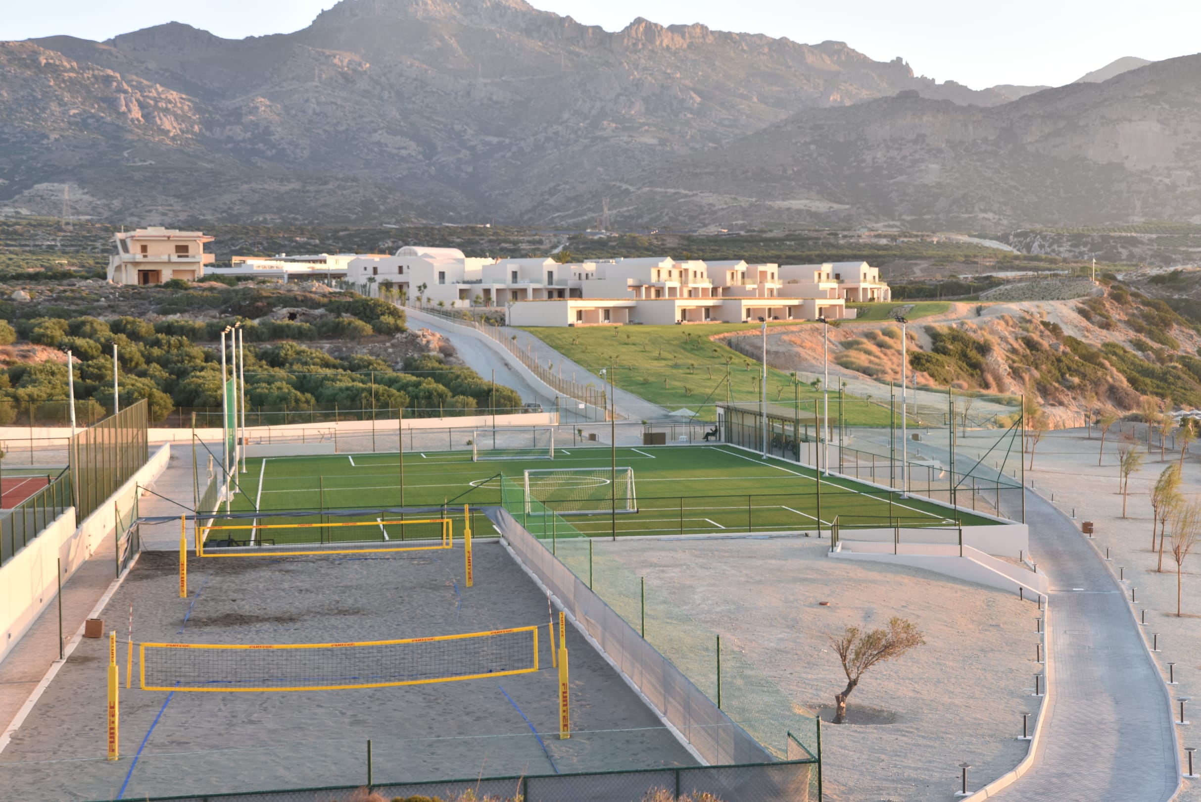 Beachvolleyball- und Fußballplatz
