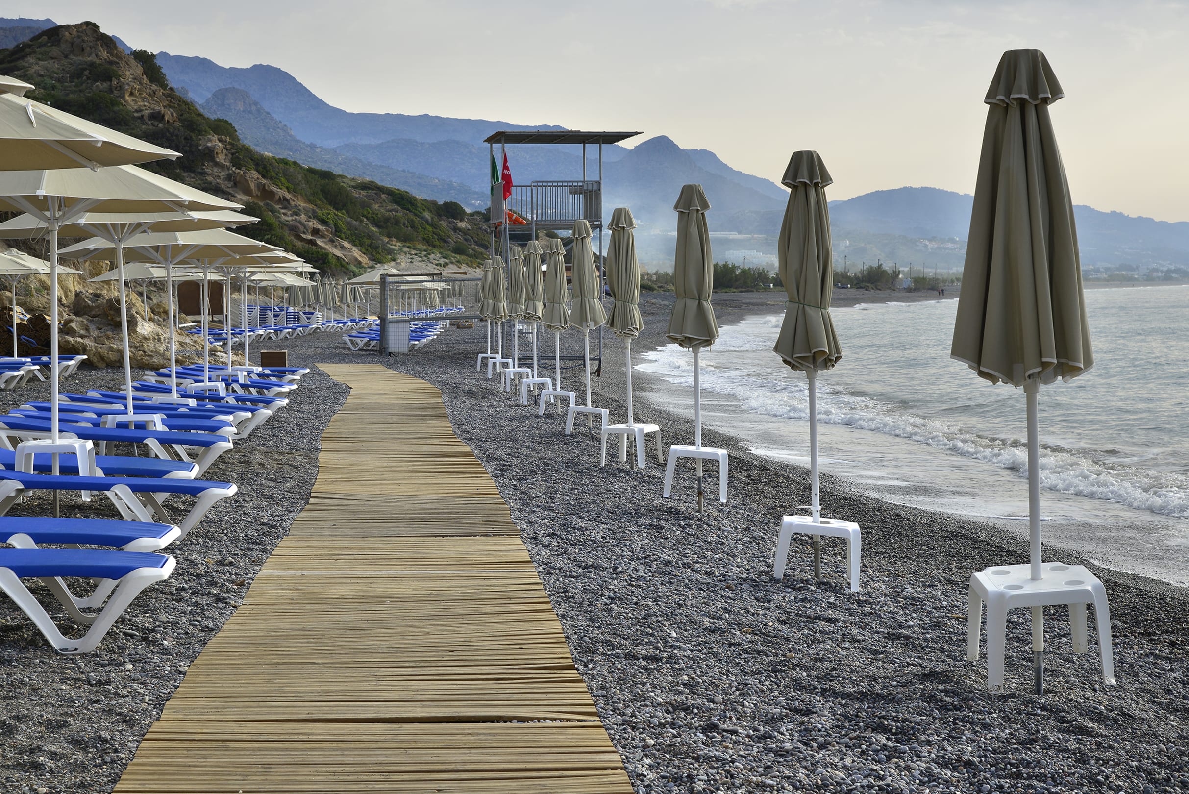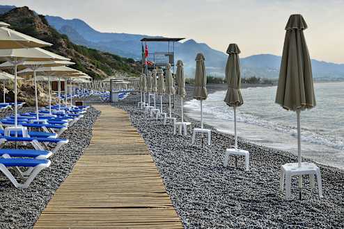längerer Kiesstrand geht in öffentlichen Strand über