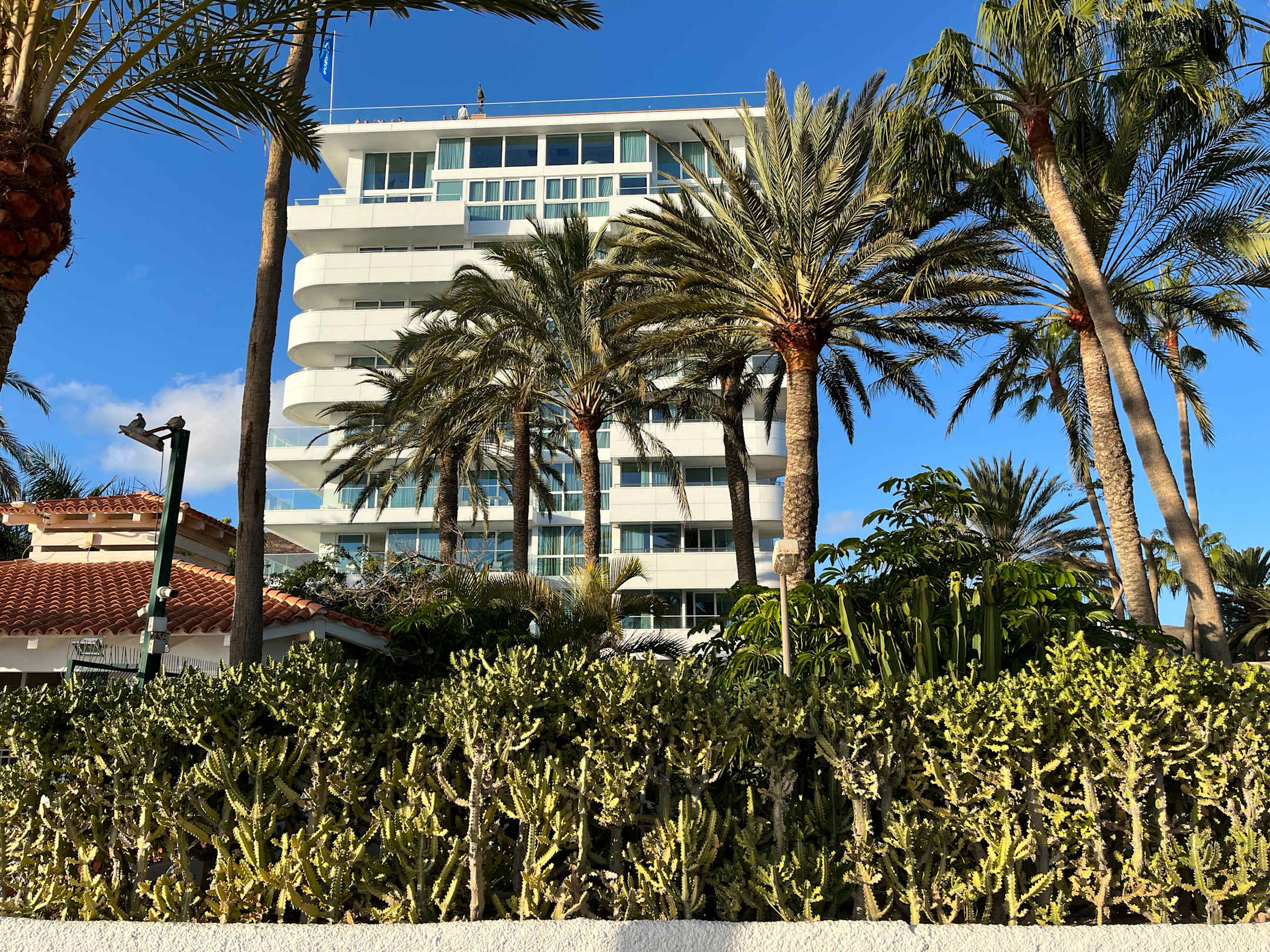 Der Torre des Robinson Jandia Playa von der Strandpromenade aus fotografiert