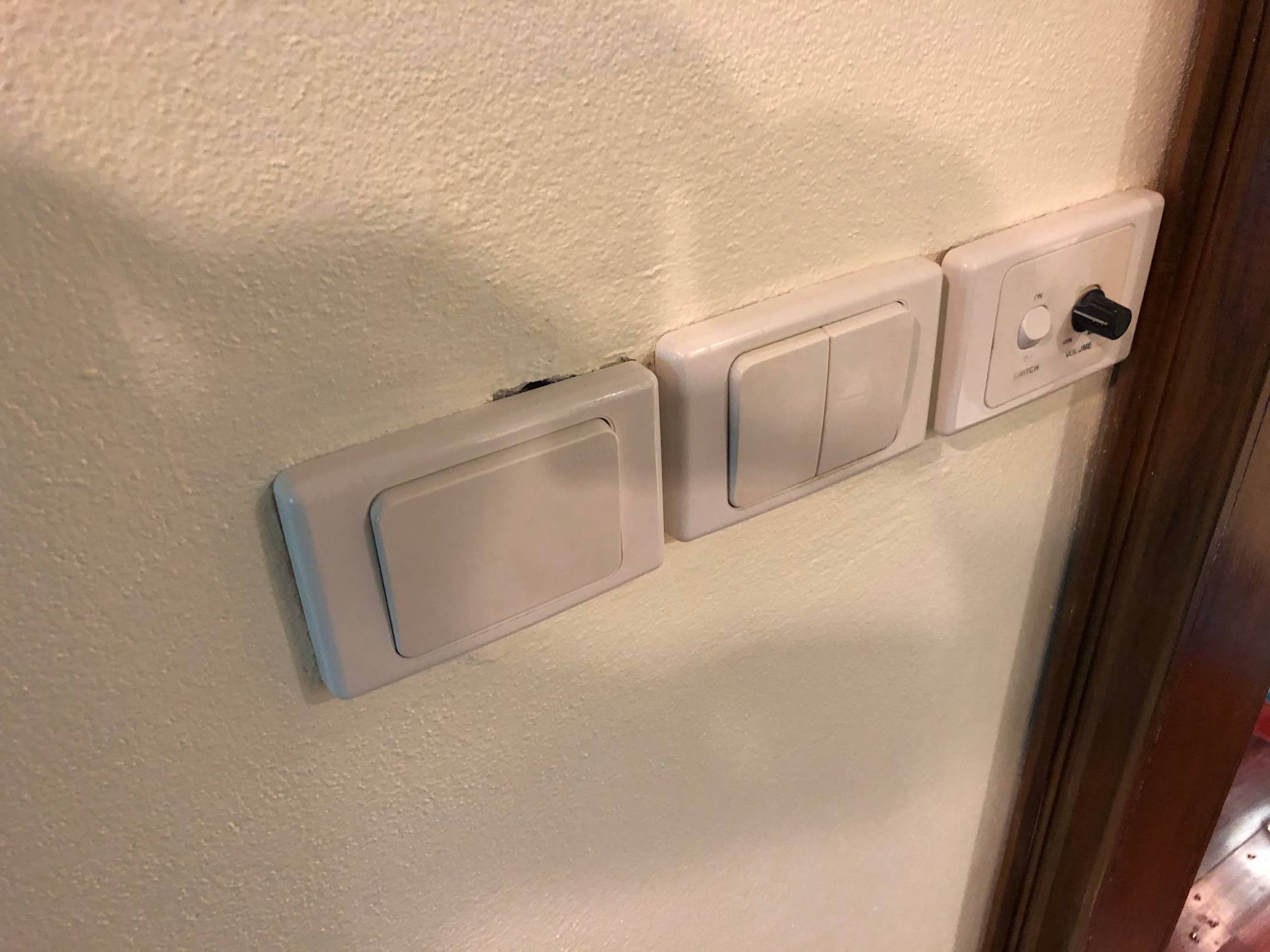 Schief montierte Lichtschalter. Superior Suite SUX1