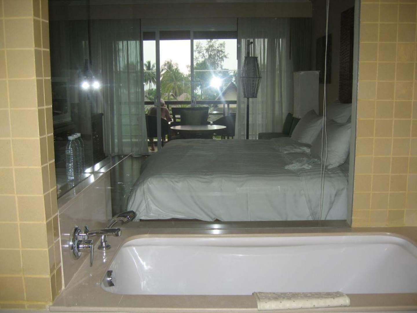 Blick von der Badewanne auf den Balkon