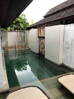 Pool Bungalow: Schmaler Pool zwischen den Mauern