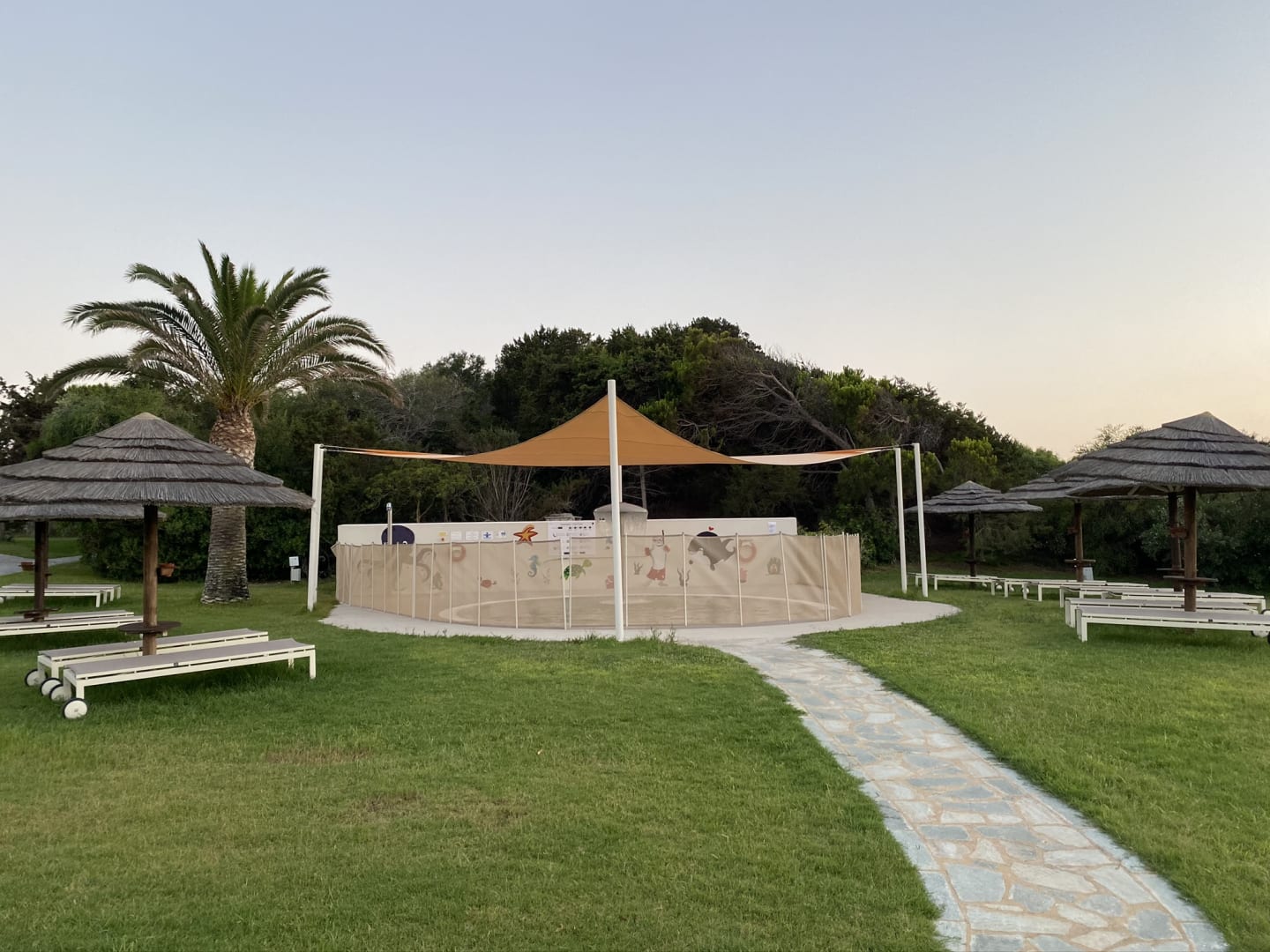 Der neue Kinderpool, abends abgedeckt zur Sicherheit