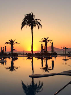 Traumhafter Sonnenuntergang am Pool