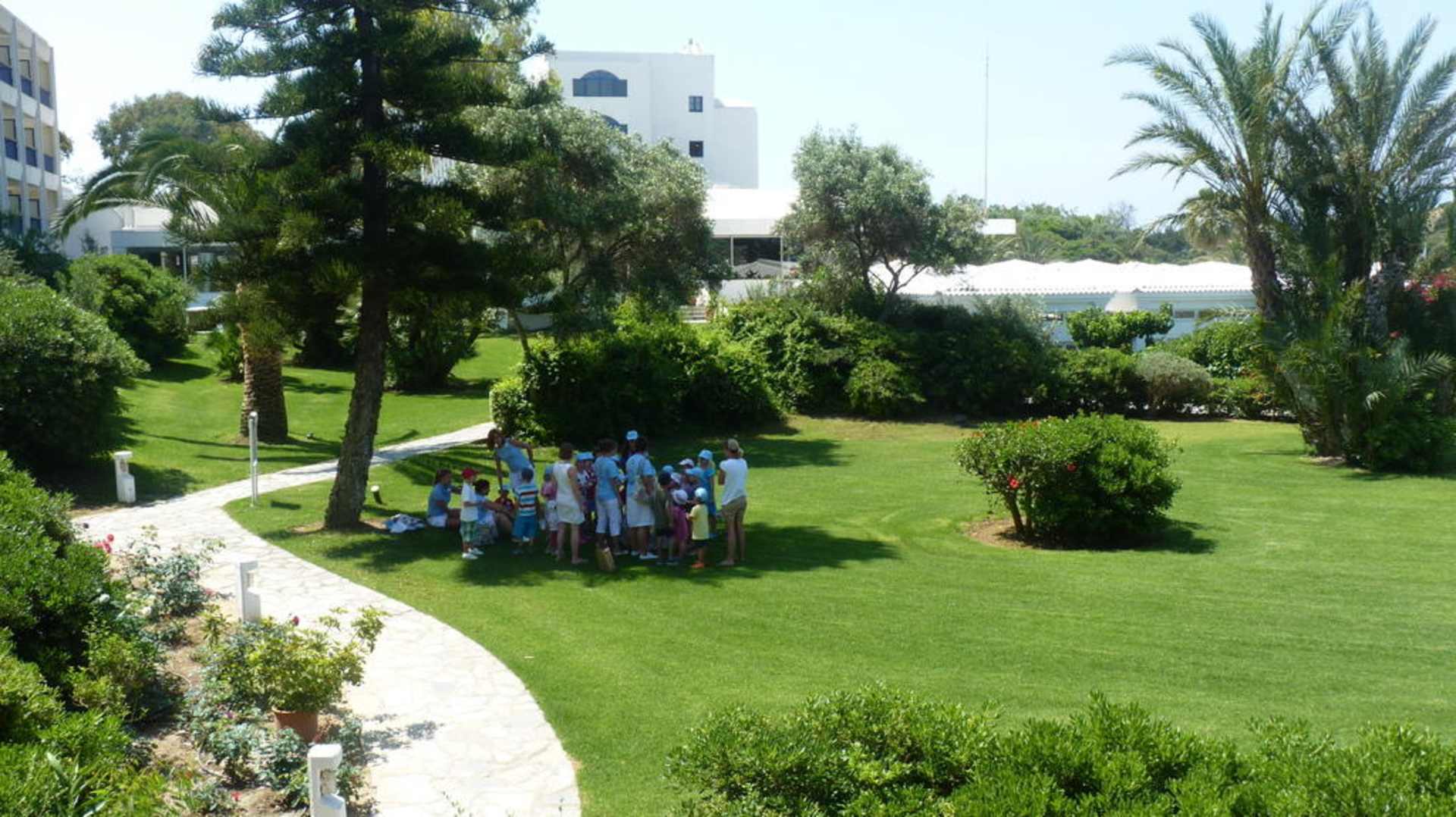 Die Kinderanimateure suchten sich immer ein Schattenplätzen aus, für Ihre Spiele mit den Kindern. Es herrschte ein liebevoller Umgangston und die Kinder waren mit Begeisterung dabei.