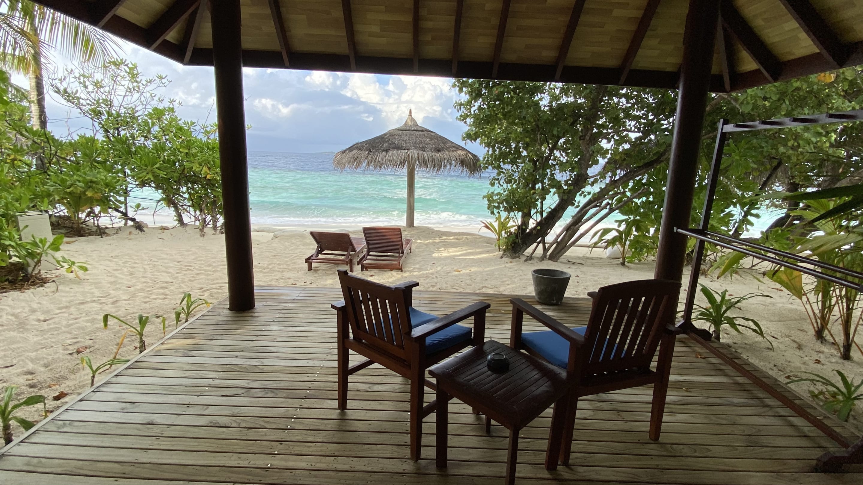 Blick vom Strandbungalow auf das Meer.