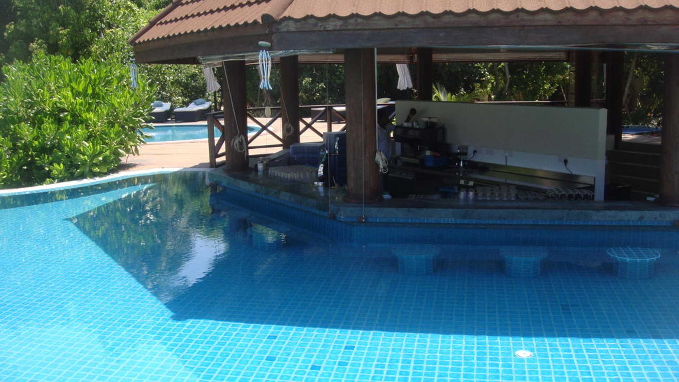 Poolbar mit Barhockern im Wasser