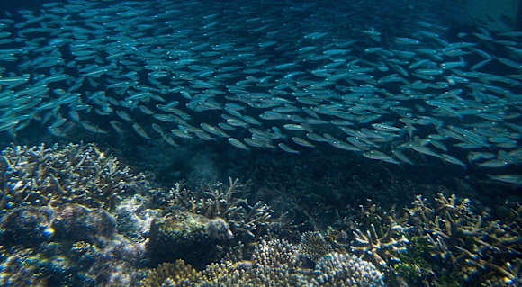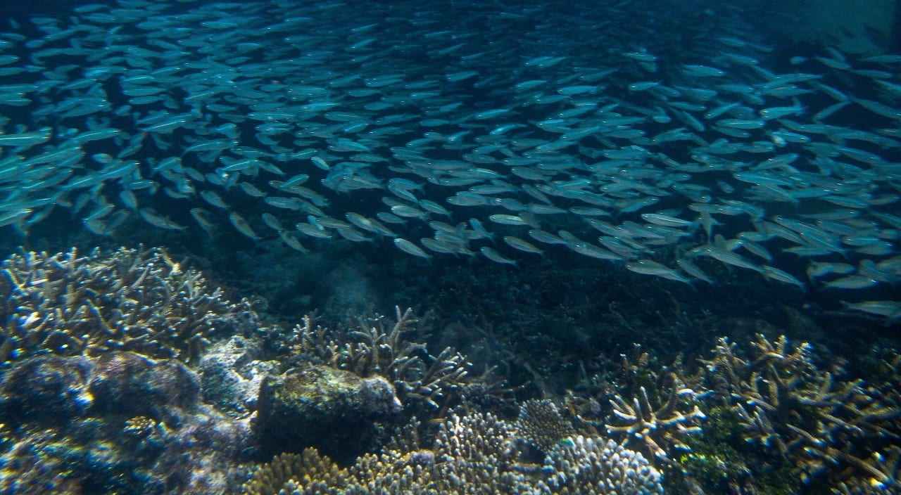 Fische im Riff und die Korallen