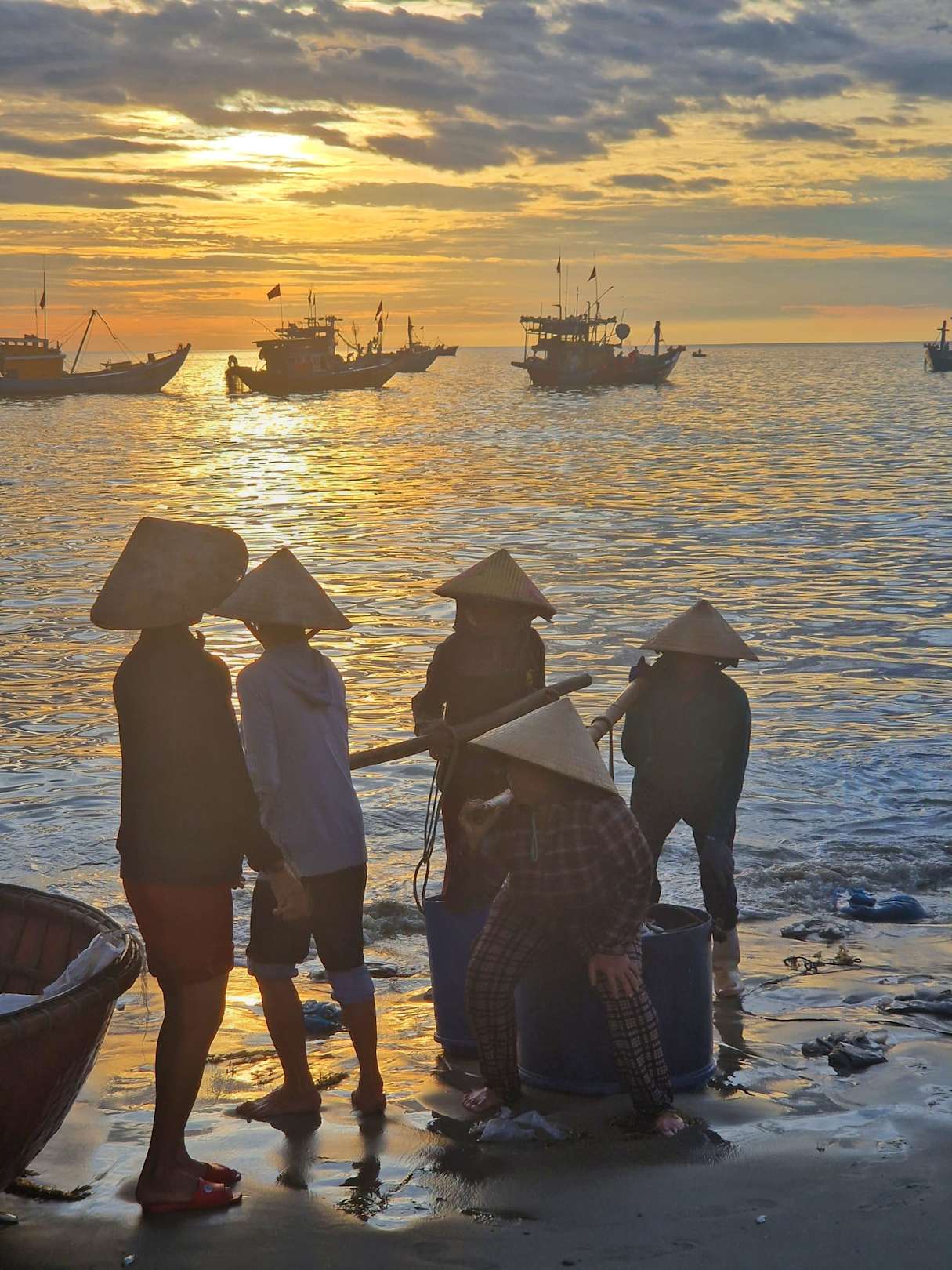 Die Fischer bringen morgens um 5:00 h ihren Fang an Land.