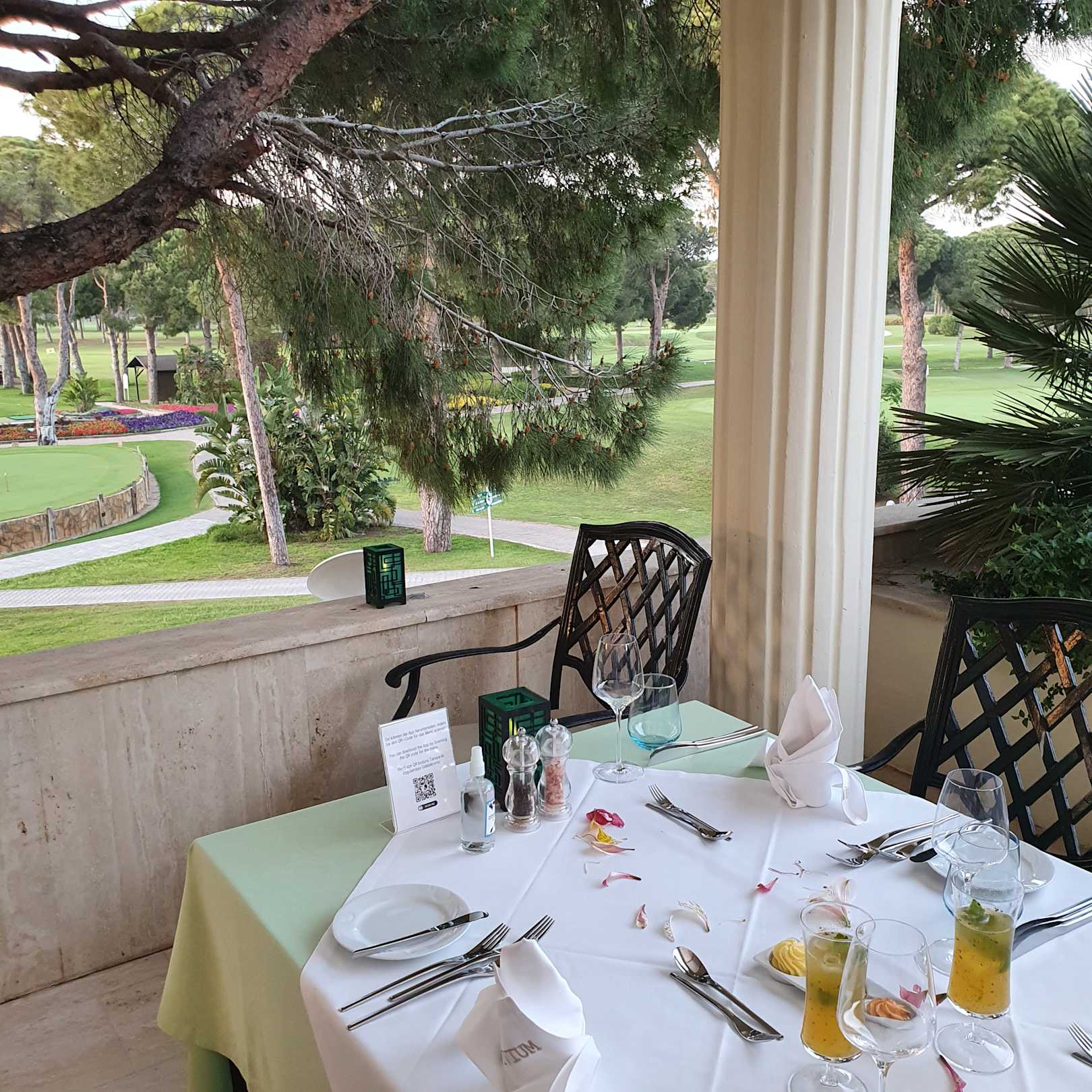 Dinner auf der Golfplatz-Terrasse (kostenpflichtig) unbedingt mal buchen, fantastisches Ambiente und Essen!