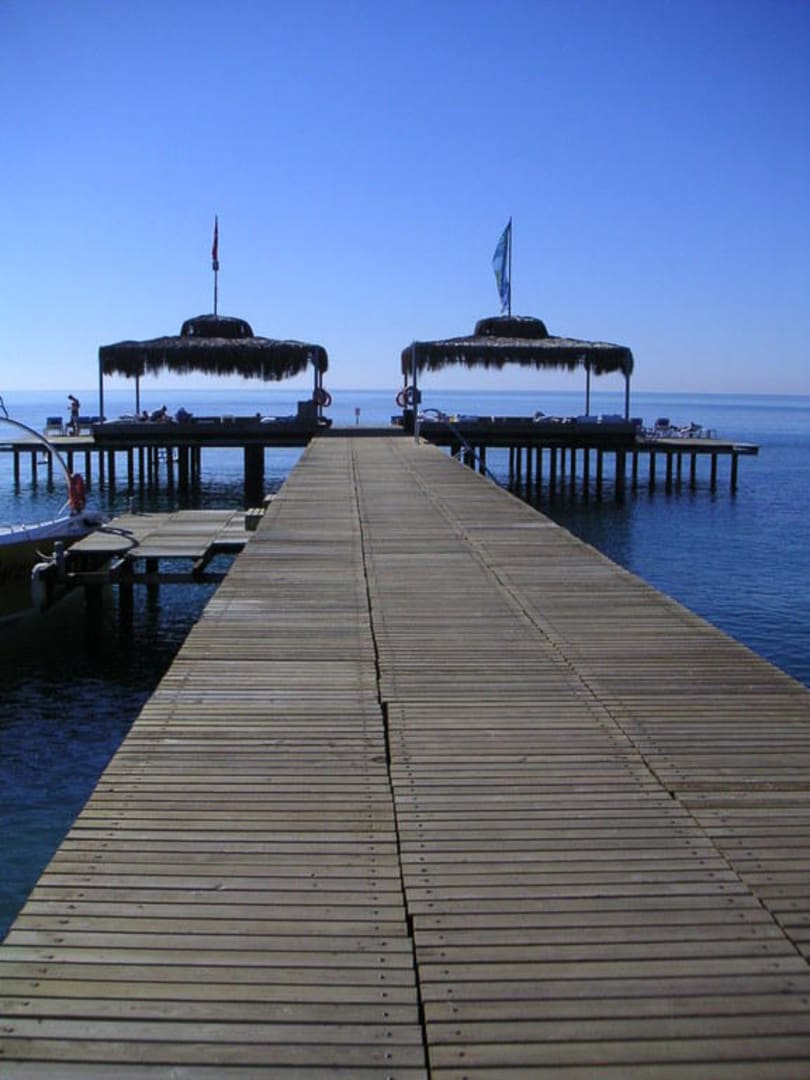 Blick zum vorgelagerten Steg, auf dem man sich prima Sonnen kann