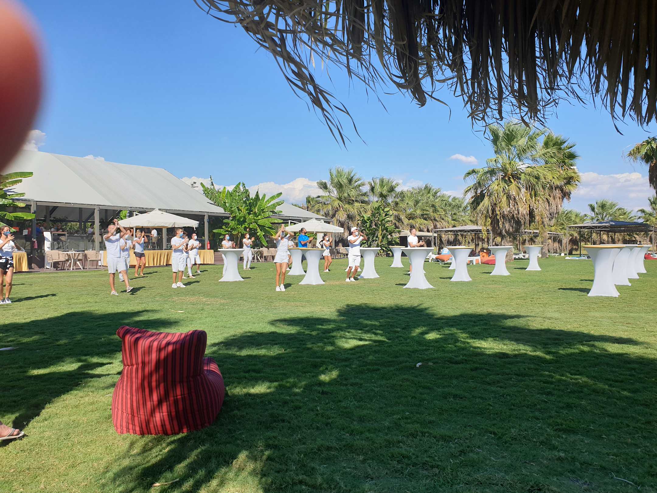 Aufführung des Club-Tanzes am Strand