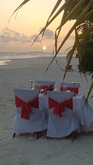 Candle light Dinner vor dem Zimmer am Strand
