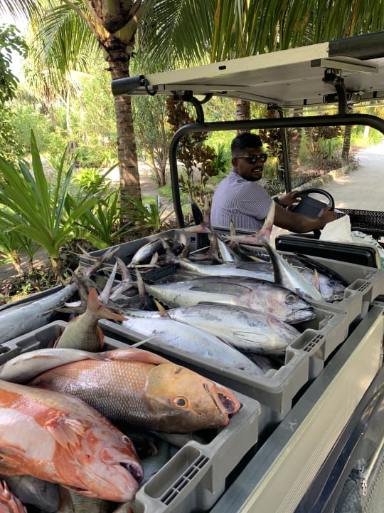Frisch gefangener Fisch kommt sofort auf den Tiscj