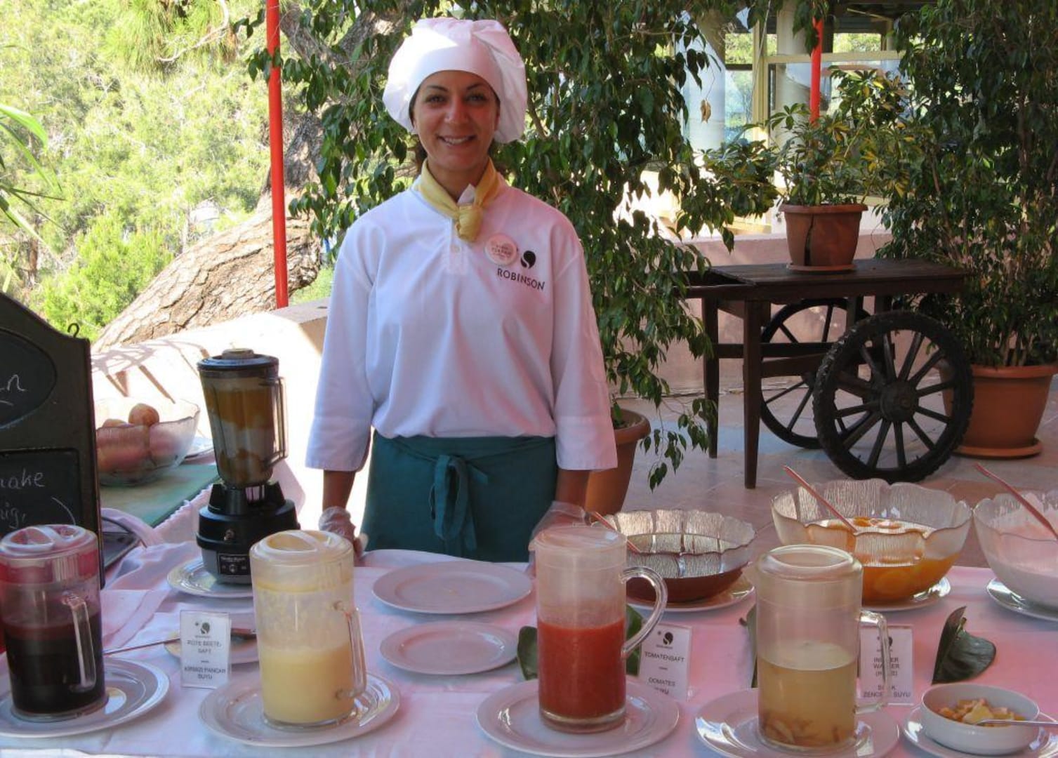 .. auf Clubrundgang.. im Hauptrestaurant werden zum Frühstück neben frisch gepresstem Orangensaft auch diverse Gemüse- und Fruchtsäfte angeboten.