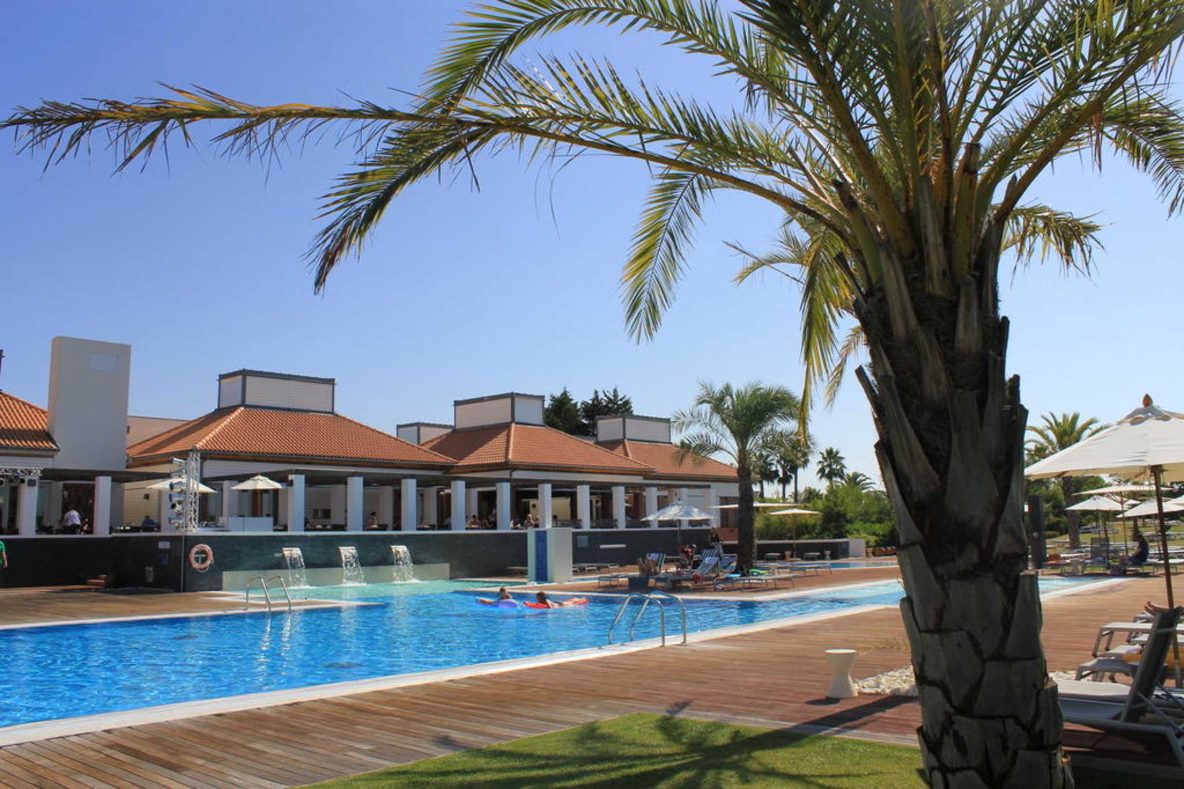 Pool mit Sicht auf das Restaurant