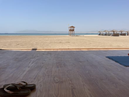 Der Sportpavillon am Strand.