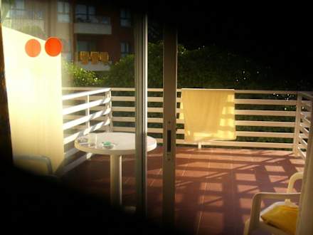 Der grosse Balkon vom Zimmer aus gesehen
