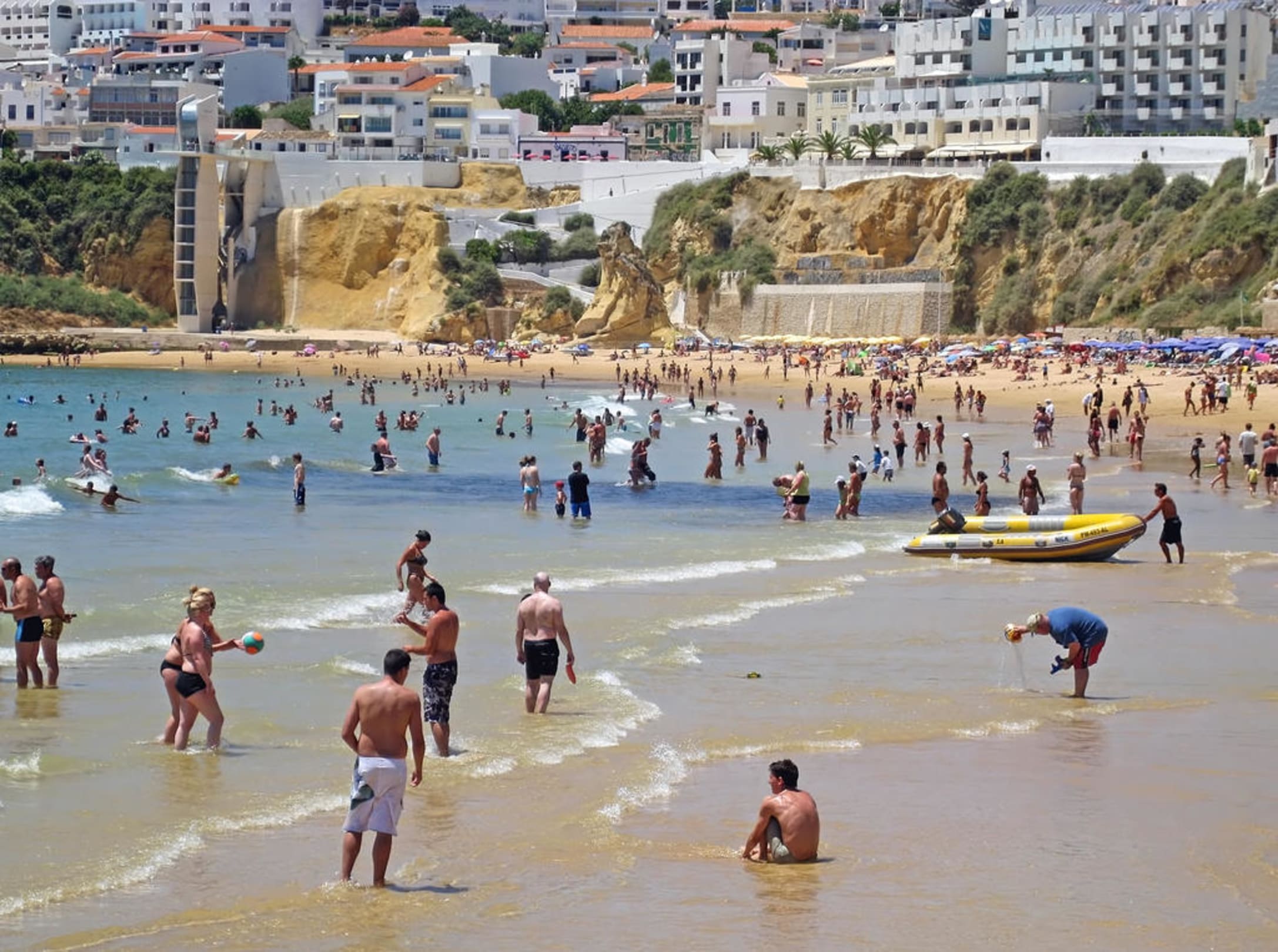 Aussicht auf Hotel Rocamar Beach und Albufeira Sandstrand.