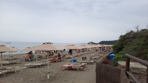 schöner, hoteleigener Strand mit reservierten Plätzen