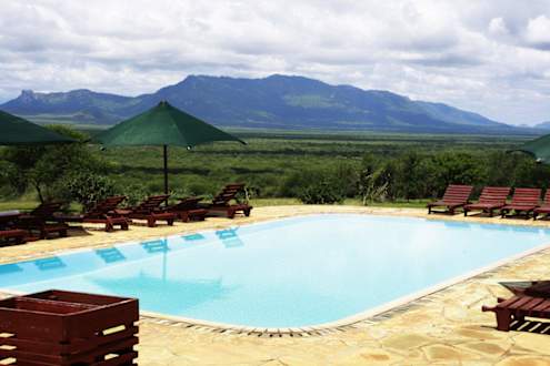 Der Pool reicht von der Größe her voll und ganz für ein paar erfrischende Bahnen aus und bietet zudem einen tollen Ausblick auf die Wildnis.