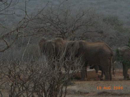Zum Greifen nahAufgrund der herrschenden Wassernot kommen jeden Abend die Elefanten an die angelegte Wasserstelle zum Trinken