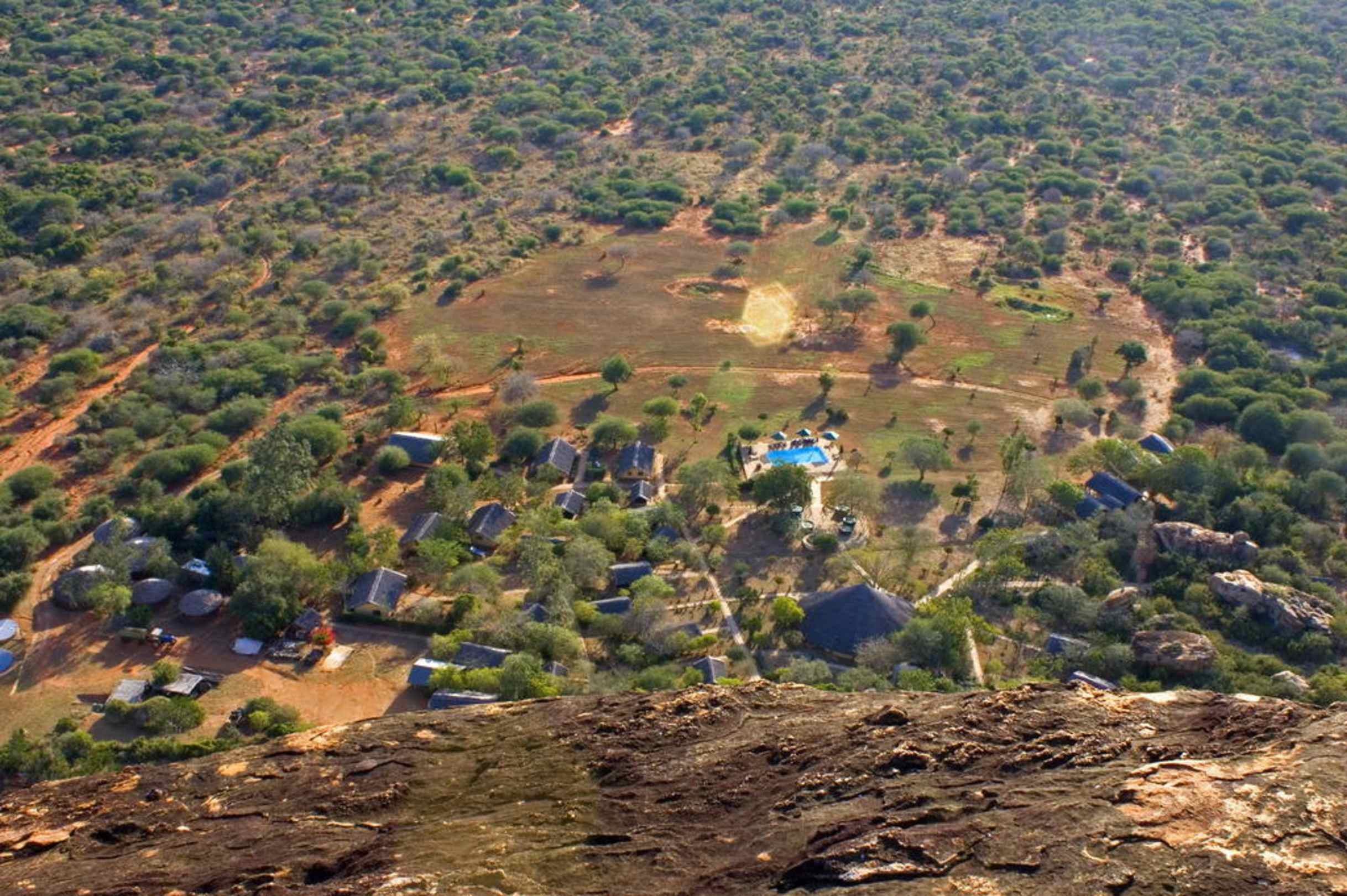 Bei einer geführten Wanderung auf den Berg Kopje kann mann das Camp von oben betrachen.