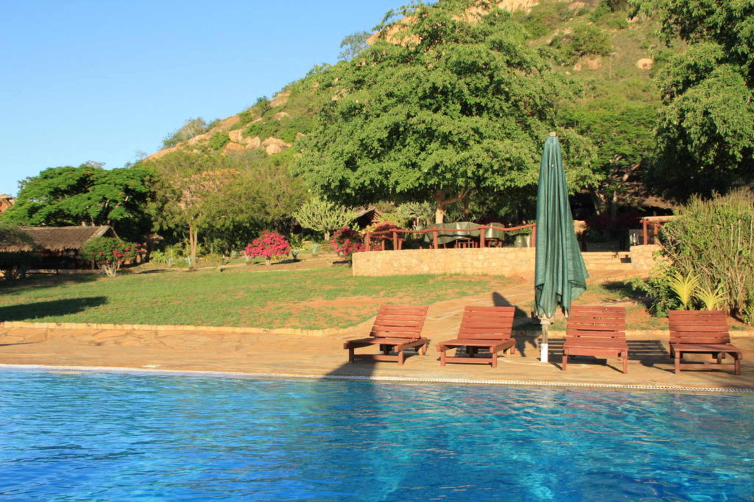 Pool und Blick auf die Gartenlage