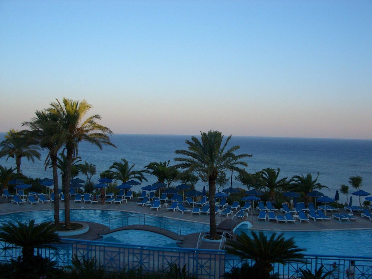 Ausblick auf den Pool von der Terrasse beim Abendessen