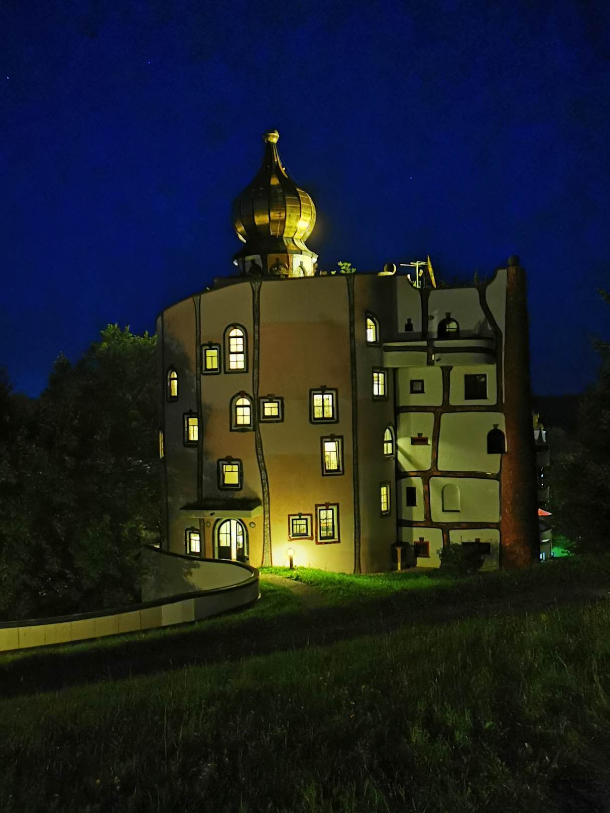 Rückseite von Stammhaus / Rezeption am Abend