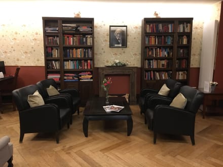 Kleine Hausbibliothek und Sitzecke.